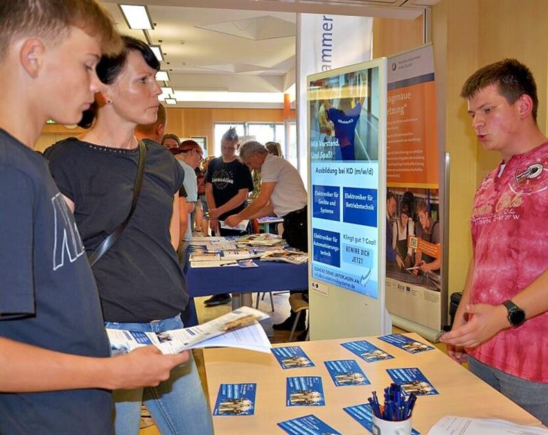 Die Messe bot eine Chance, sich über die hiesige Vielfalt an Ausbildungsberufen zu informieren. Über jene zum Elektroniker bei der Zerbster Firma KD Elektroniksysteme zum Beispiel. "Wir haben derzeit drei Lehrlinge", erzählte Norbert Bilke. Passende Azubis zu finden, gestalte sich schon schwierig, da es sich um einen technischen Beruf handelt, der ein hohes Fachwissen erfordert, begründete der Lehrausbilder.