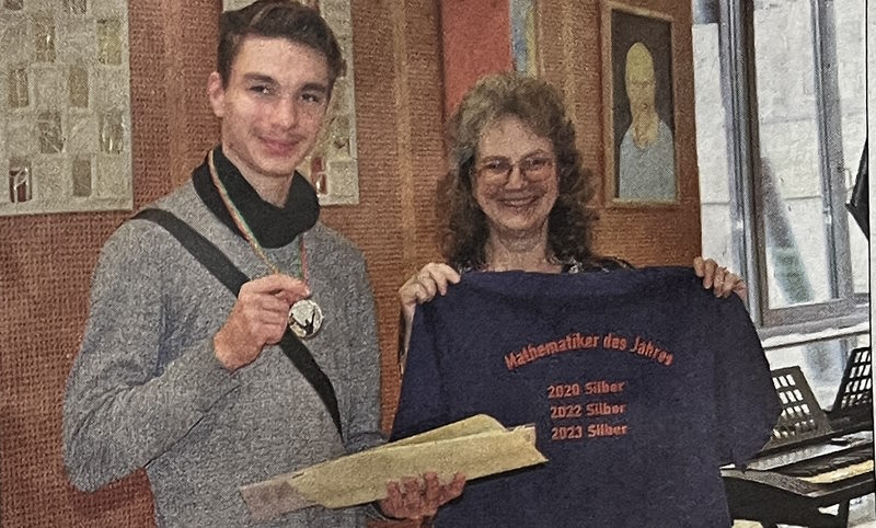 Filip gehörte als Sieger in Klasse 9 dazu. Zudem errang er mit seinen 52 Punkten unter allen Mitstreitern in der Klassen- stufe 8 bis 10 den zweiten Platz - und das gelang ihm schön mehrfach, weshalb er nun bereits zum dritten Mal zum "Mathematiker des Jahres" ausgezeichnet wurde und das eben in Silber.