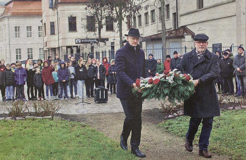 "Wir erinnern daran, was gemeinhin für unmöglich zu halten wäre und doch grausame Realität war", so der Bürgermeister. Neben Vertretern des Stadtrates, der Verwaltung und ein paar Zerbster Bürgern war eine 5. Klasse der Ciervisti-Schule gekommen. "Nimmt dieses Menschheitsverbrechen den Raum an unseren Schulen ein, den es benötigt, um uns gegen eine neue Aufnahme von Theorien zu schützen?", wandte sich Dittmann an die Versammelten.
